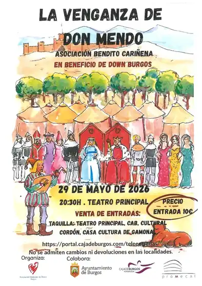 La Venganza de Don Mendo de Pedro Muñoz Seca, repreesentada por la compañía Bendito Cariñena, grupo no profesional con residencia en Madrid y que parte del elenco cuenta conalgunos familiares del autor..