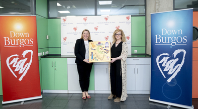En su transcurso Begoña Carpintero, presidenta de Down Burgos entregó a la Consejera un cuadro realizado por Ismael Ubierna, alumno del colegio concertado de educación especial,"Estela"